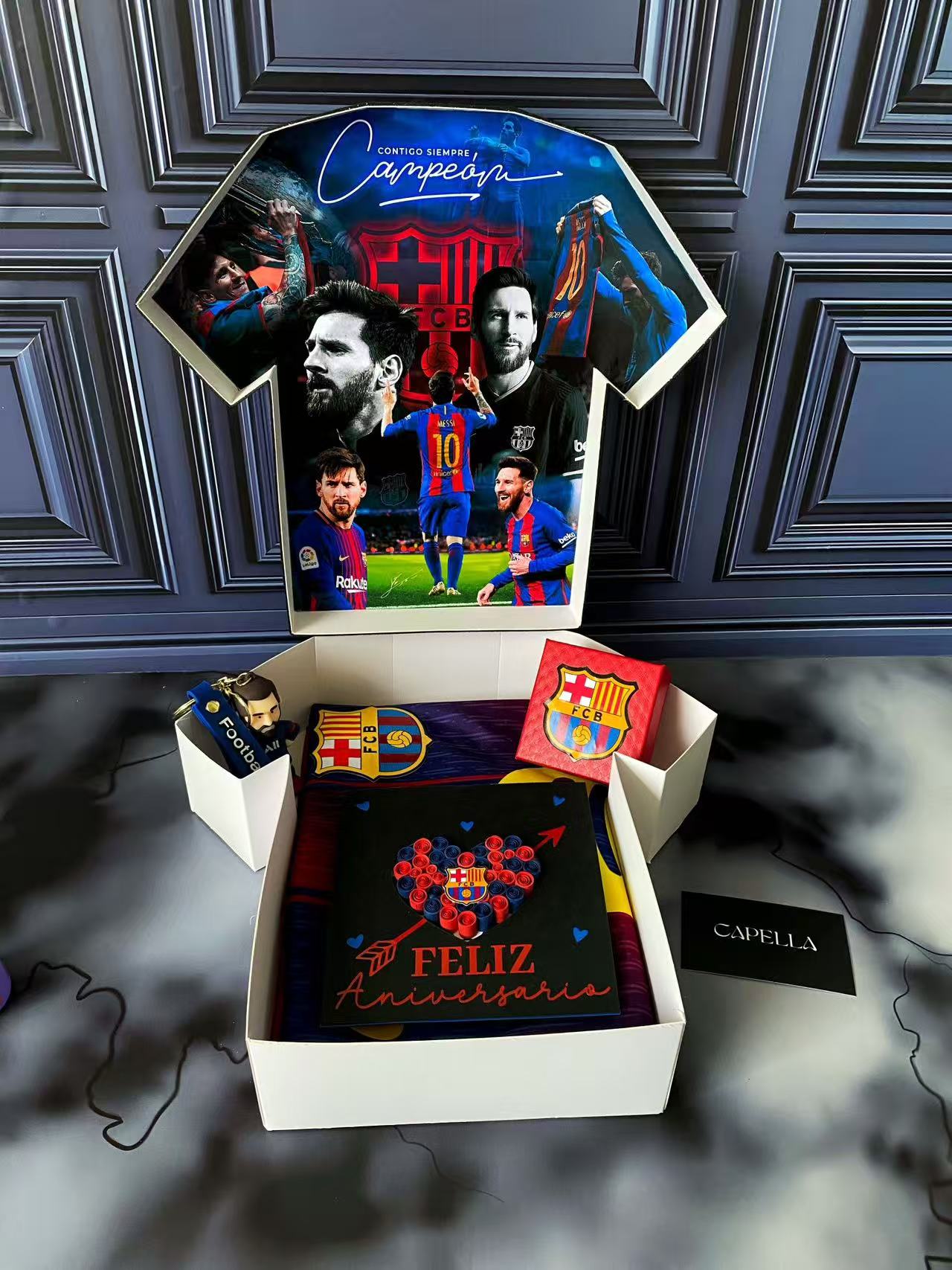- Caja en forma de camiseta, material foldcote 29X31 cm