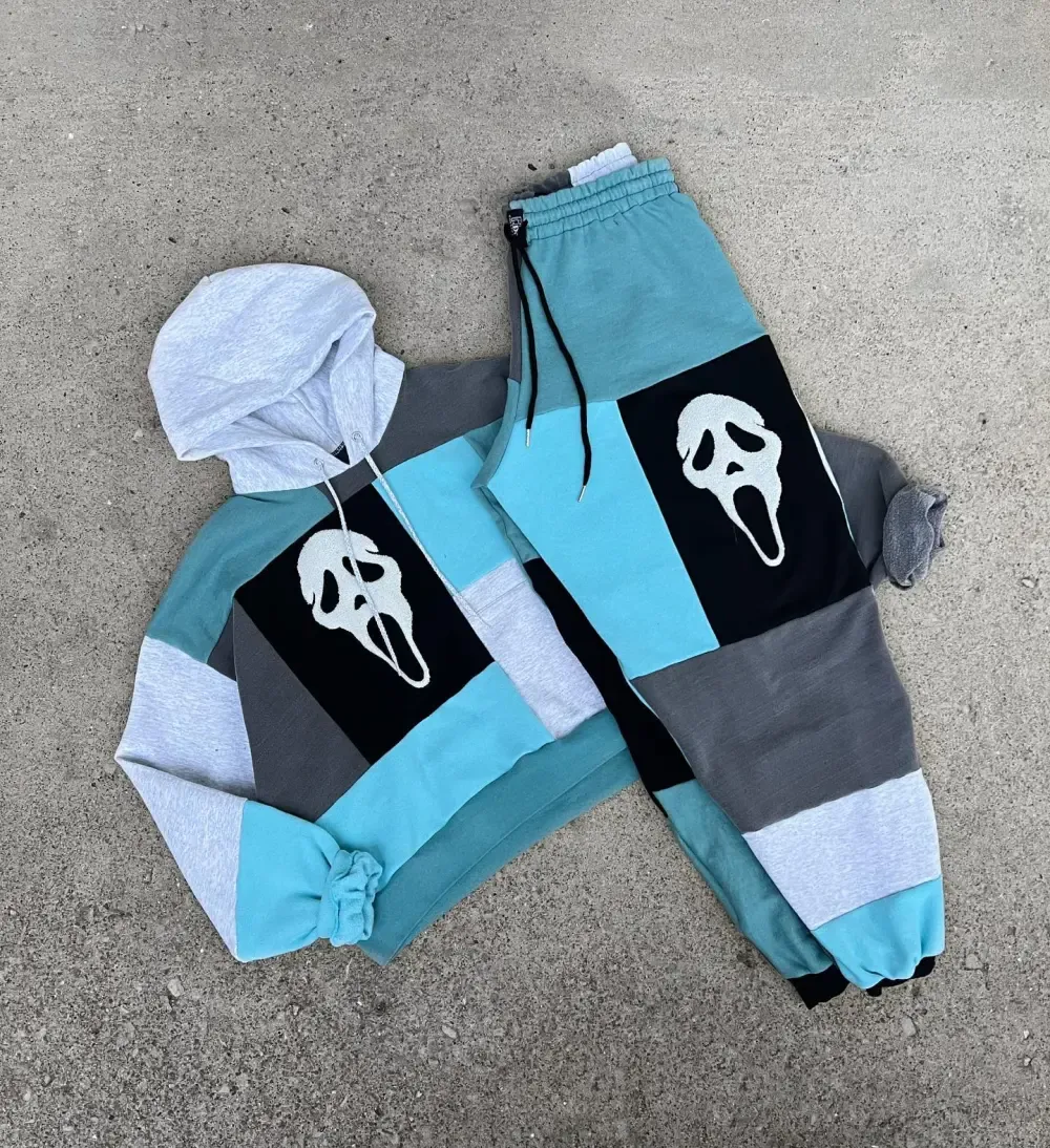Blue 2 piece set tops and bottoms how perfect and cozy piece for your Halloween day