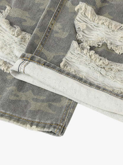 Camouflage Patchwork Ripped Cargo Jeans - 2452