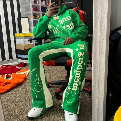 Casual Street Panel Sweatpants Hoodie Two-Piece Set