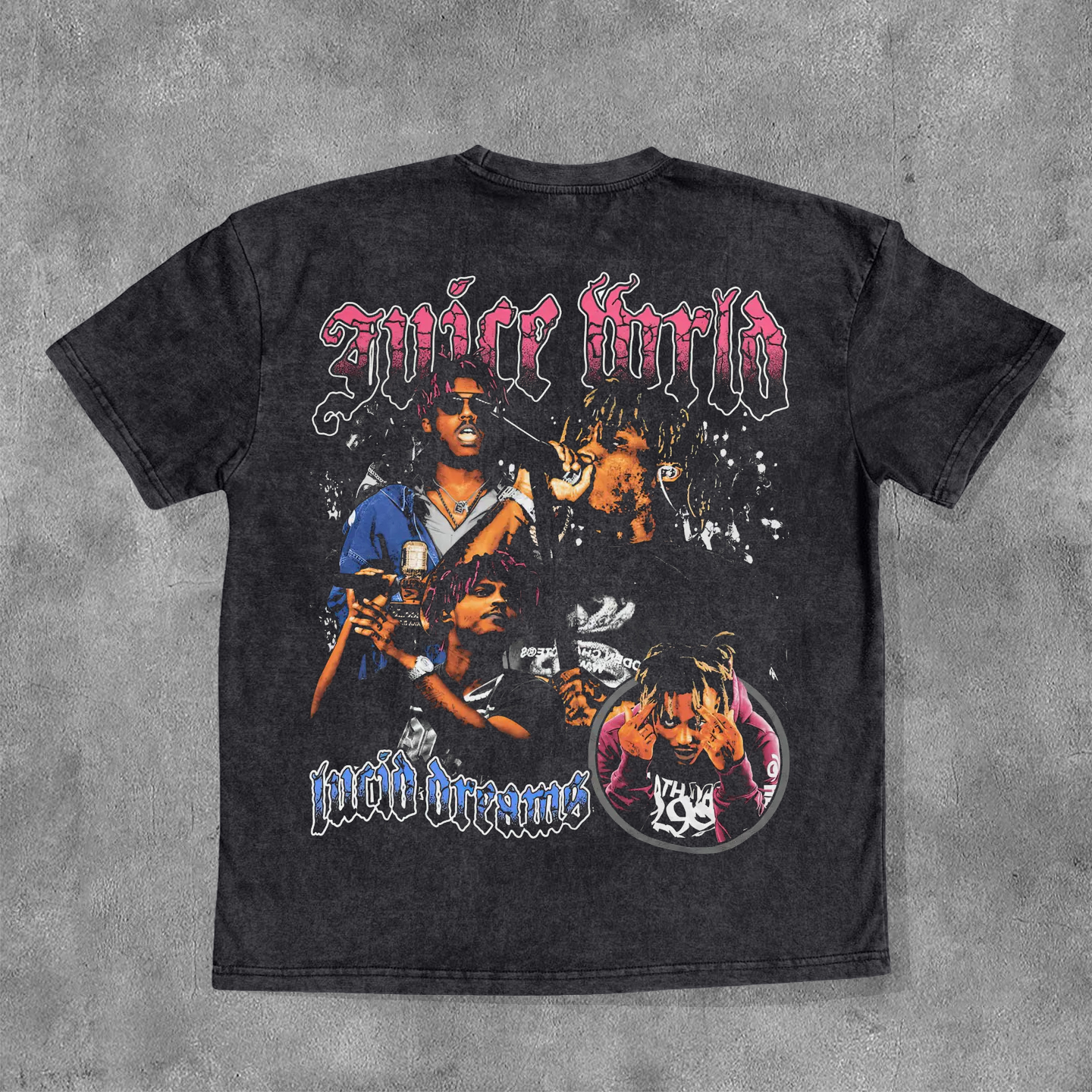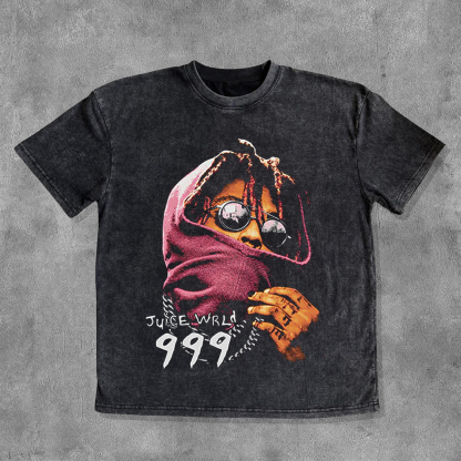 Character Letters Washed Distressed Short Sleeve T-Shirt
