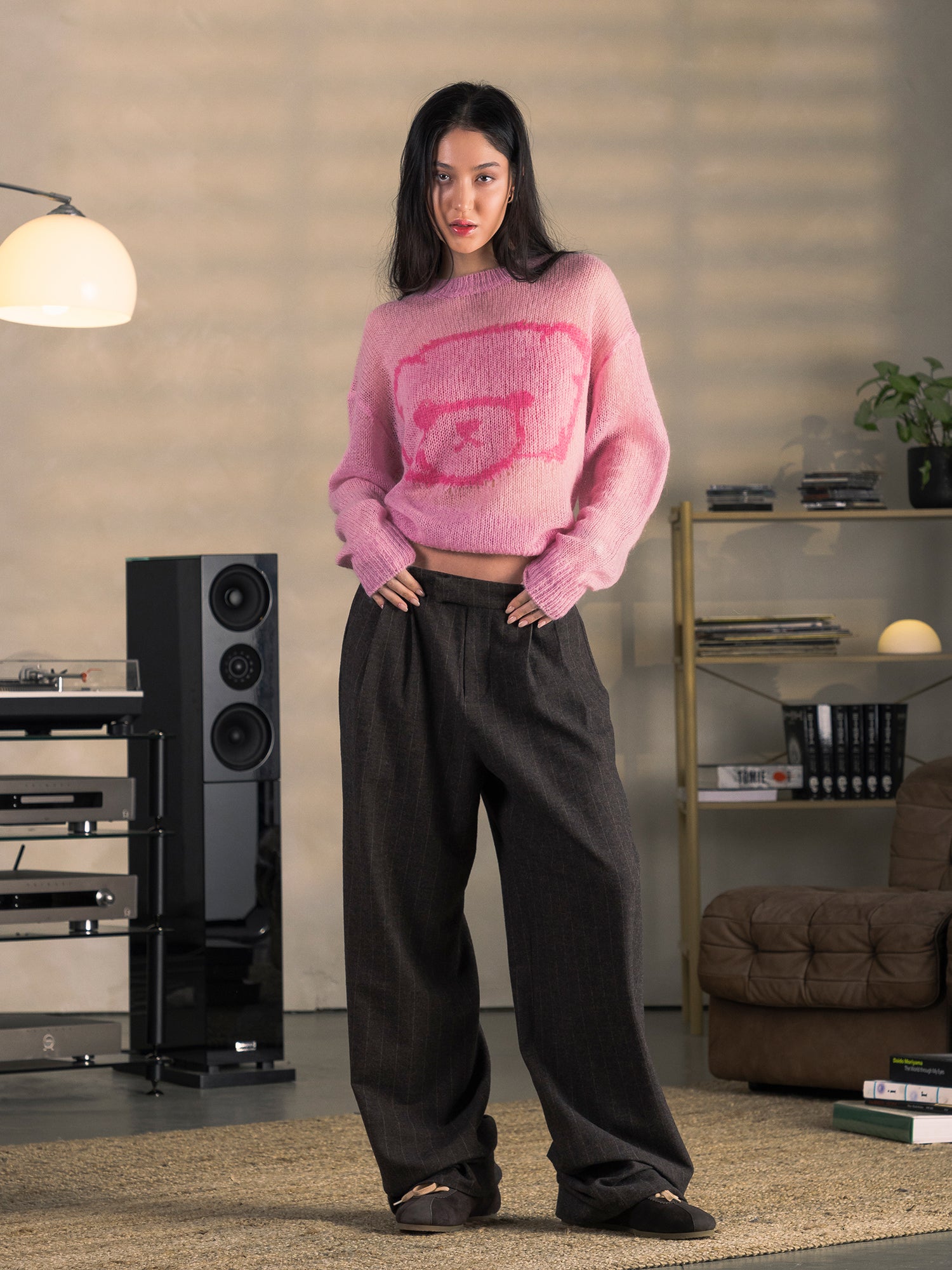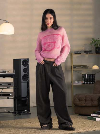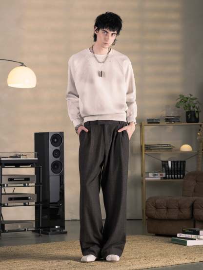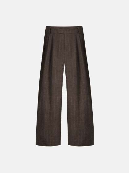 PINSTRIPE PLEATED PANTS - BROWN
