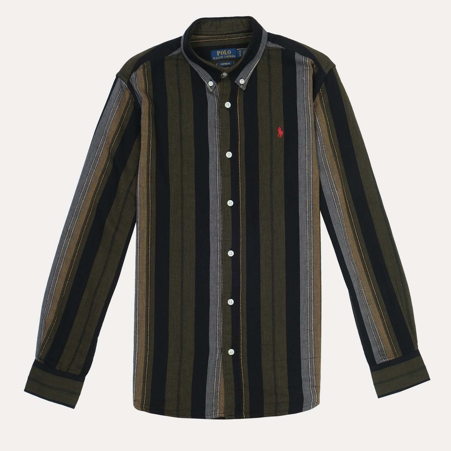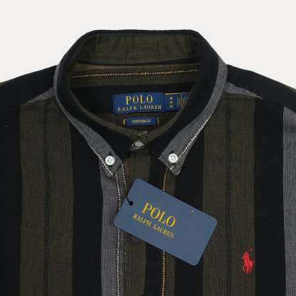 POLO Enchanted Olive Tailored Fit Long Sleeve Striped Shirt