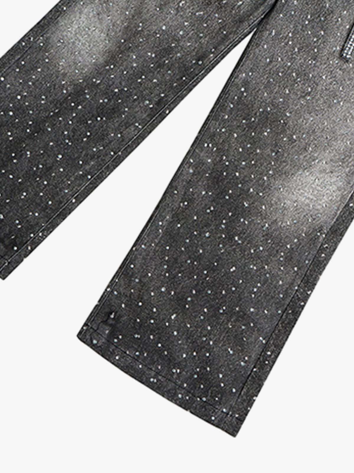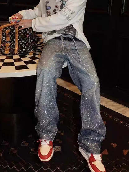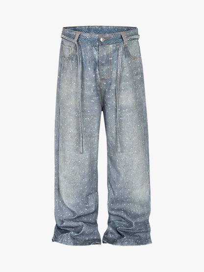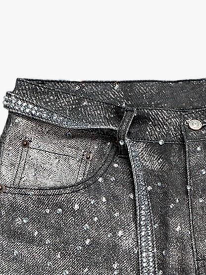 Denim Distressed Belt Diamond Decorated Jeans