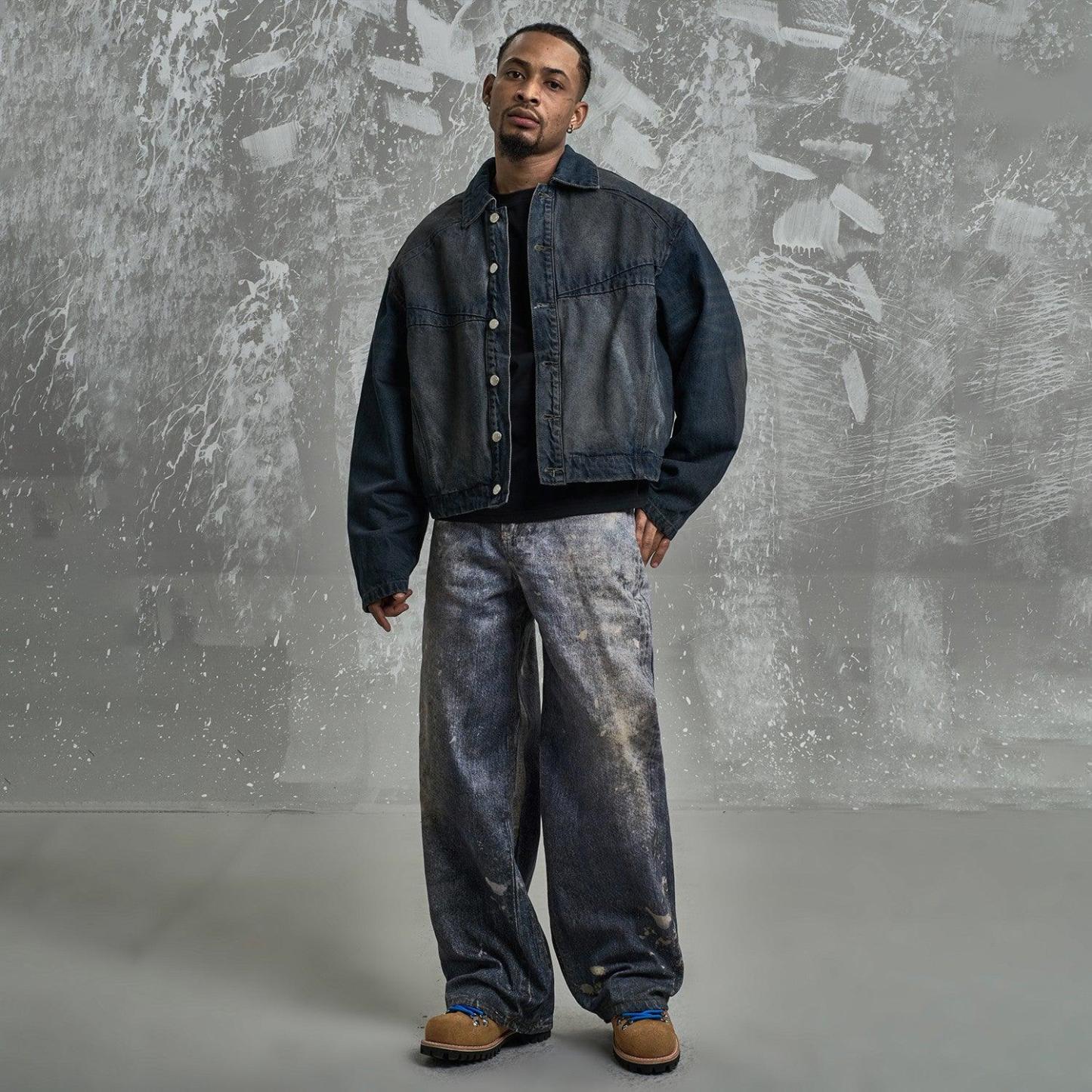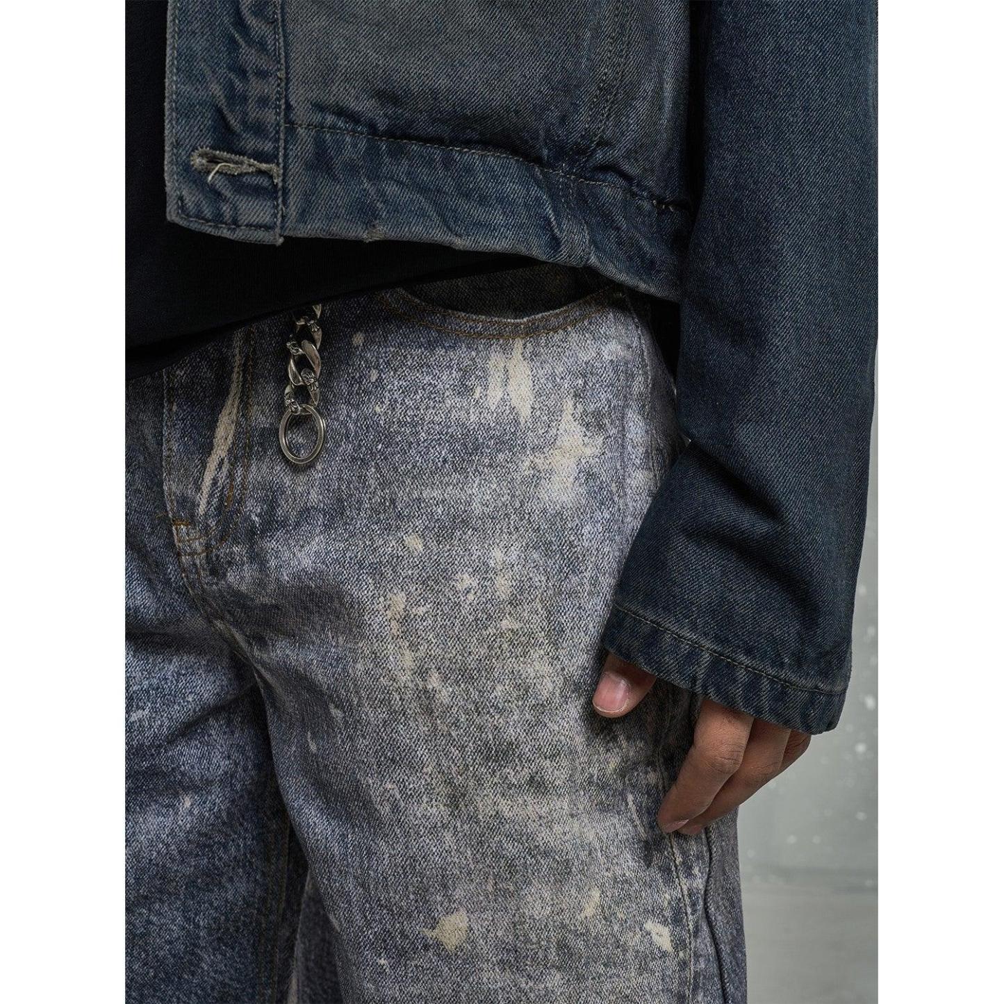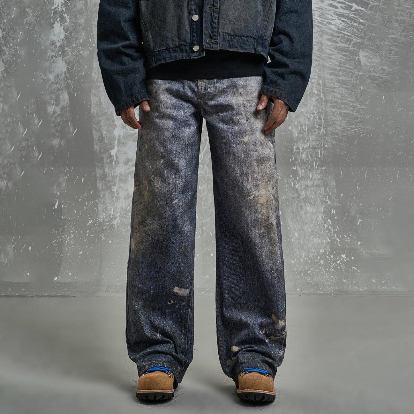 Made from premium denim, these jeans feature bold graffiti prints and distressed details, combining urban streetwear with artistic flair.