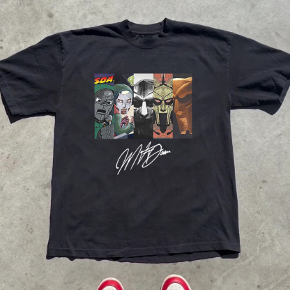 Fashion Rapper Mask Print Short Sleeve T-Shirt