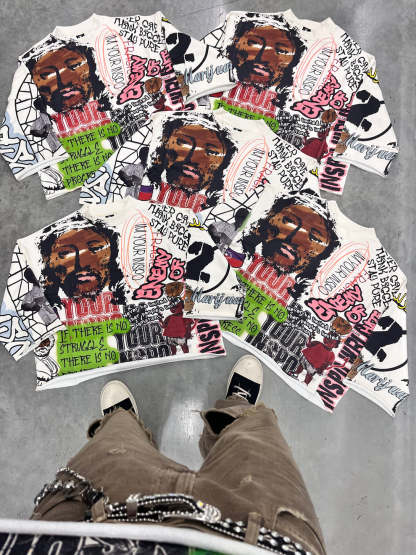 Fashionable personalized printed all-over irregular pattern Three-quarter Sleeve T-shirt