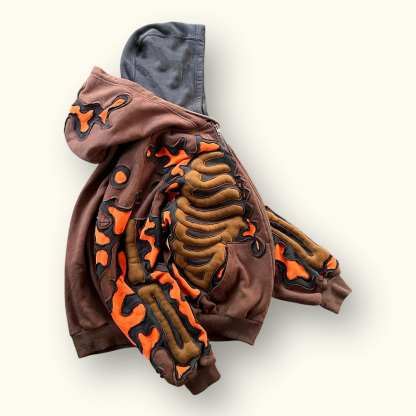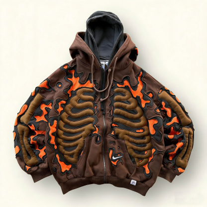 Fiery Design 3D Color-Block Hoodie