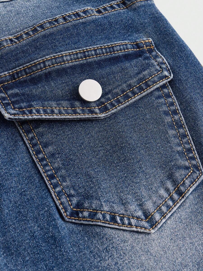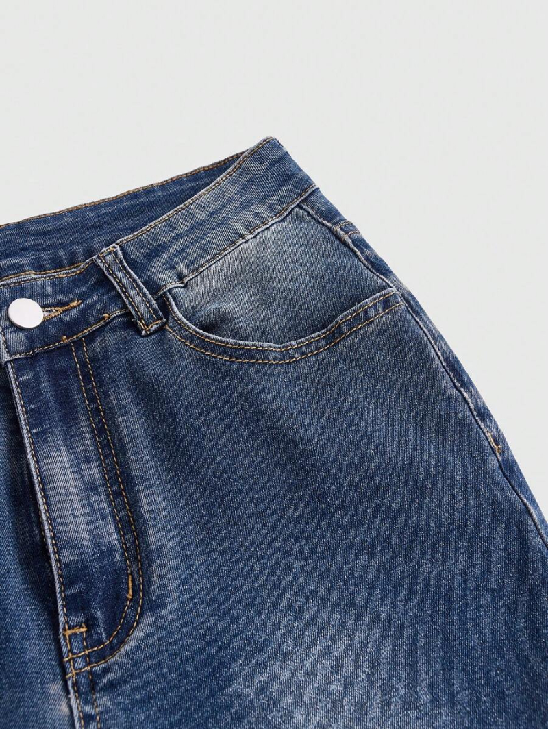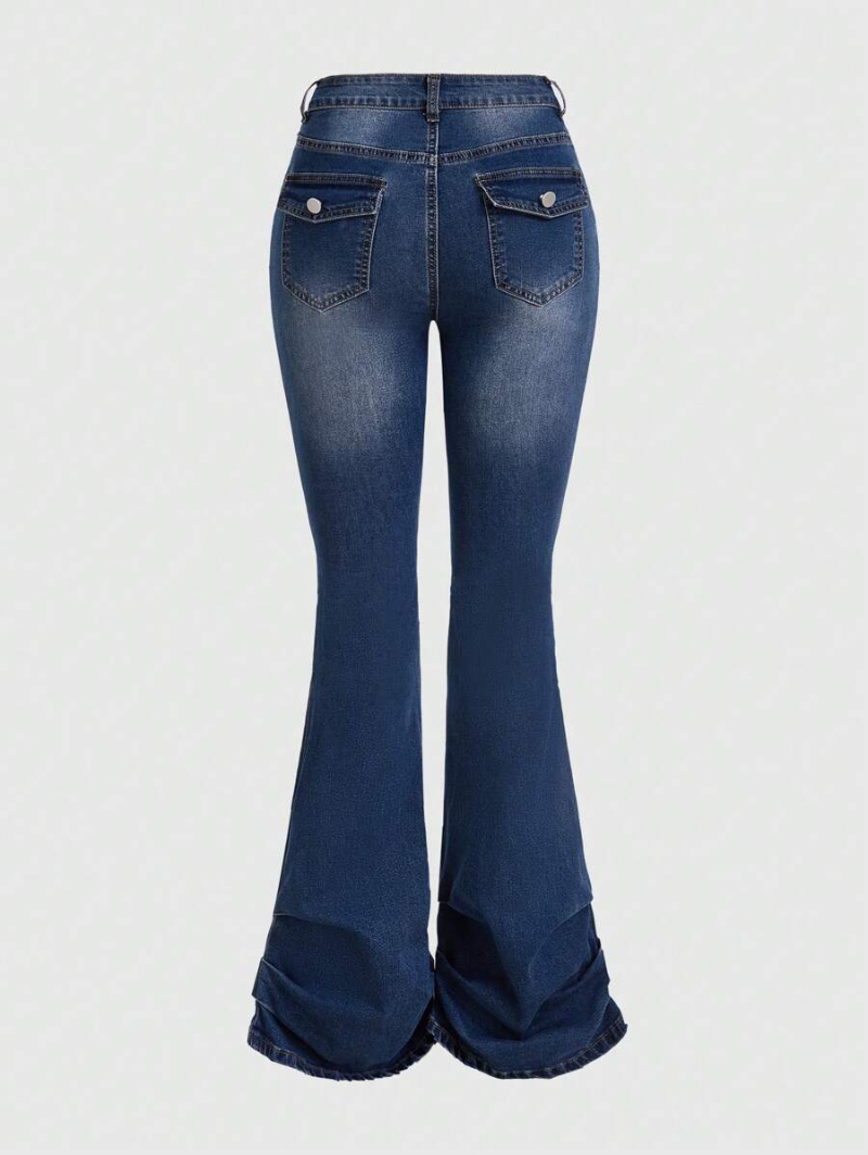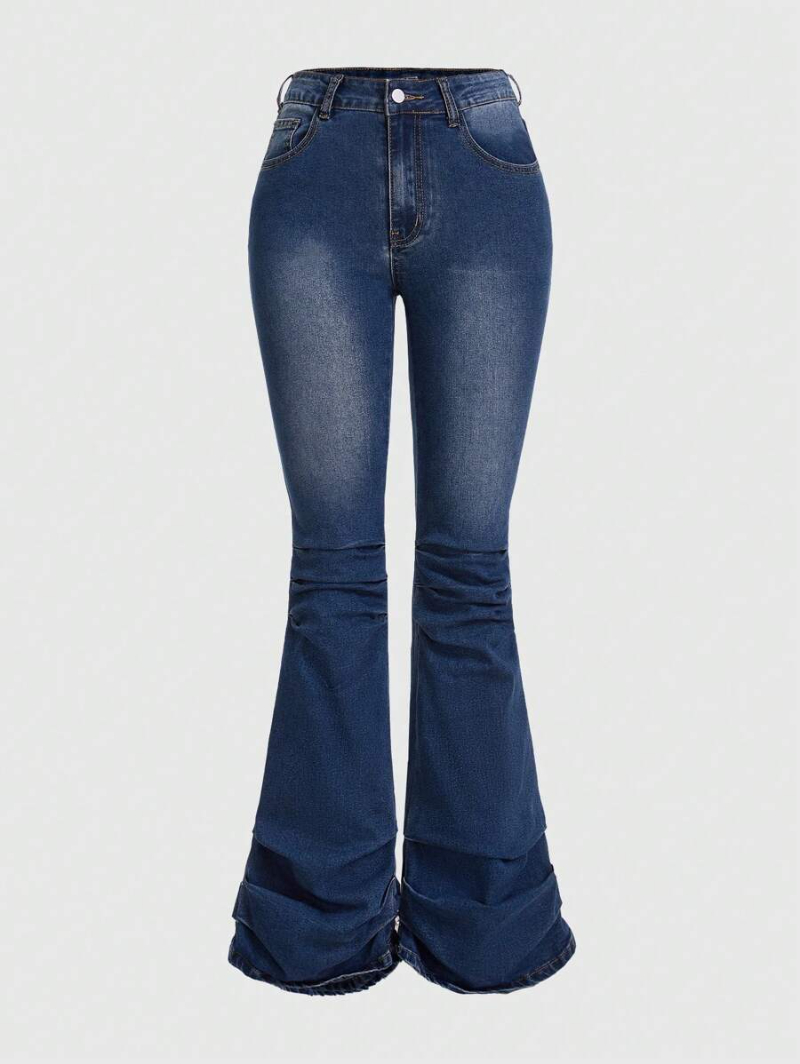 Grunge Punk Street Style Commuter High Stretch Washed Plus Size Women'S Bell-Bottomed Pencil Jeans With Pleated Hem Detail