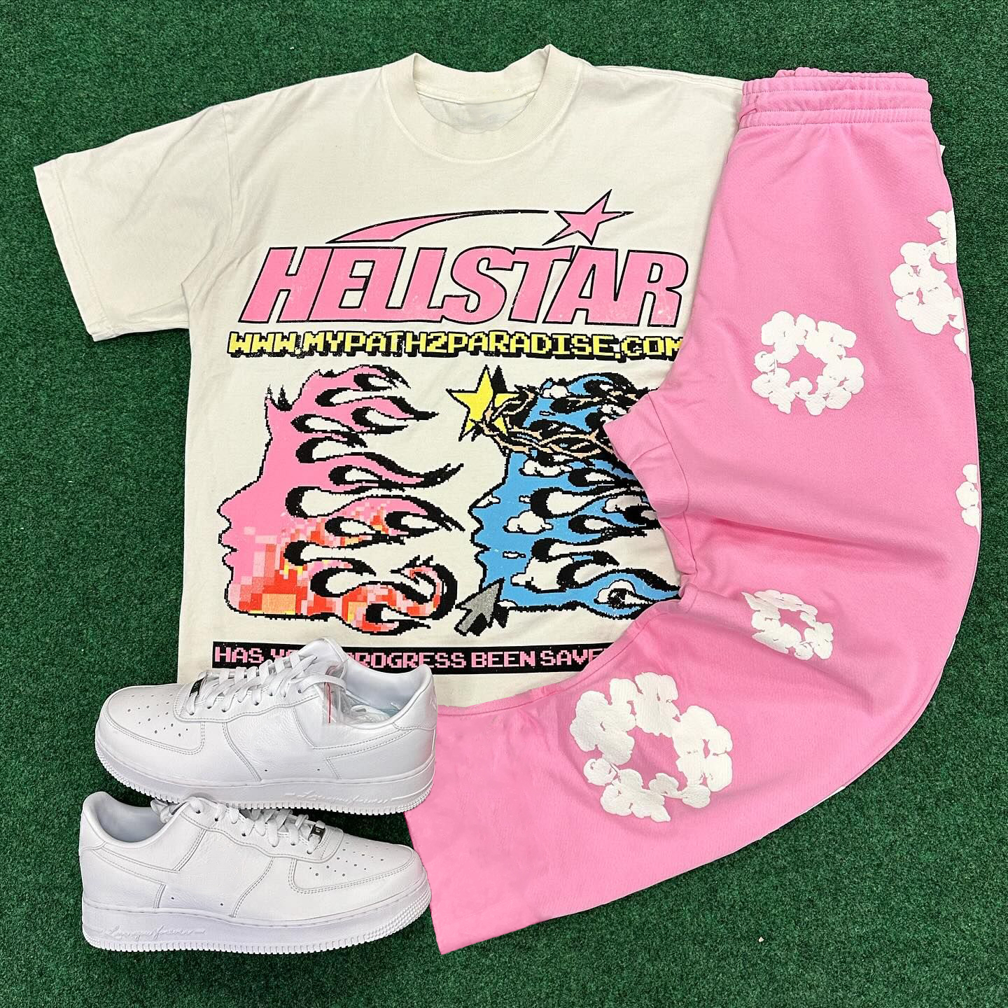 Hellstar Floral Print T-shirt Sweatpants Two Piece Set
