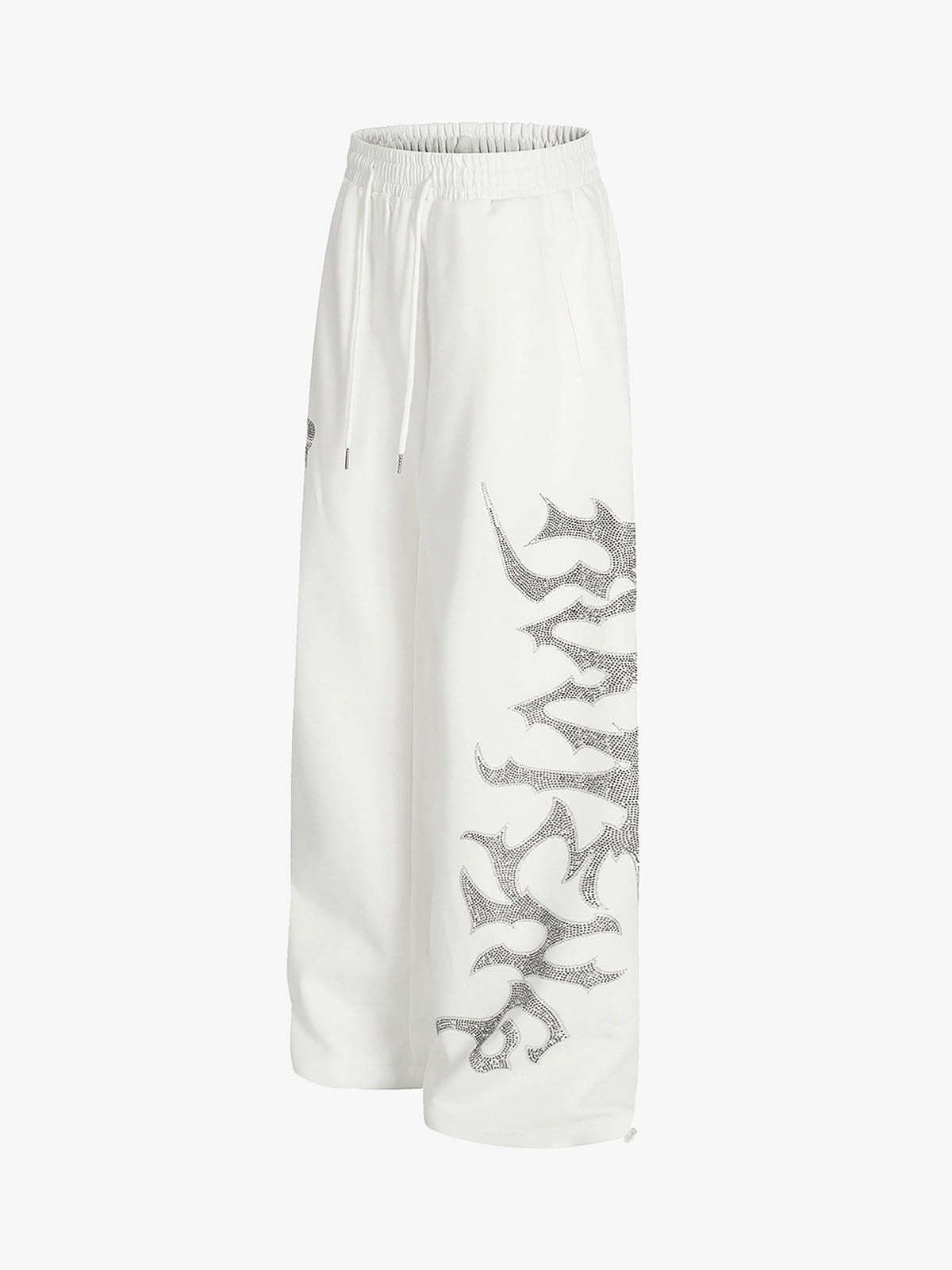 High Street Rhinestone Hip-hop Wide-leg Sweatpants