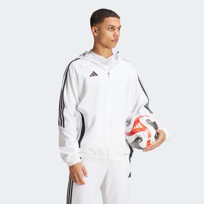 Fare the wind and remain triumphant in the adidas Tiro24 Men's Windbreaker. This lightweight jacket won't slow you down one bit. And with the zipper closure, you can get ready for the field in record time!