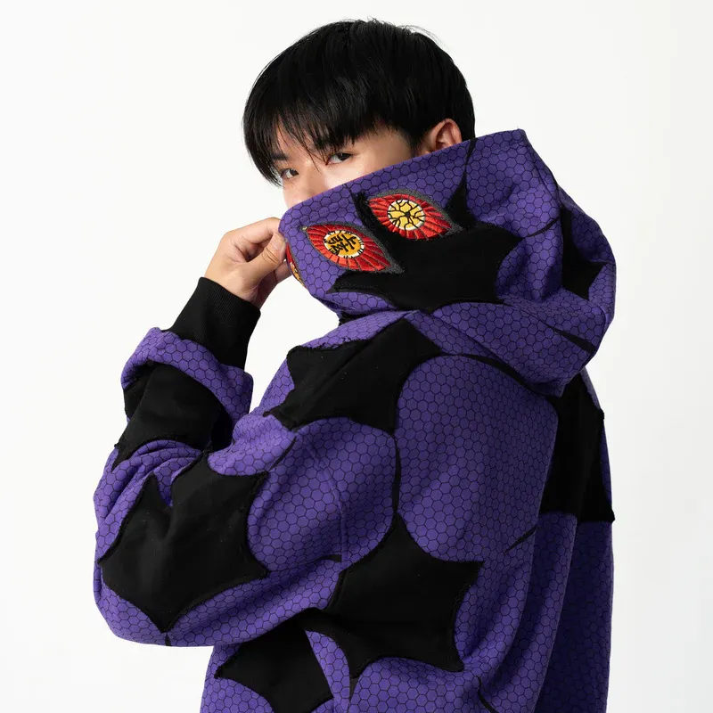 - Demon eyes embroidered on hood