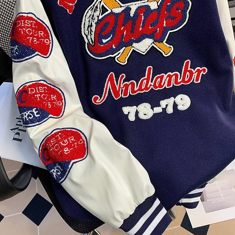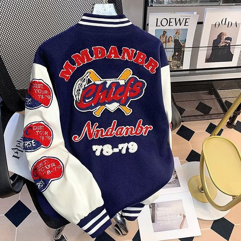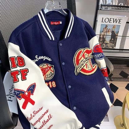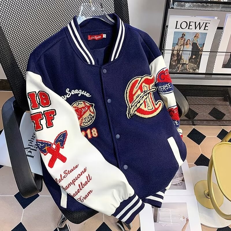 Leather patchwork towelling baseball jacket