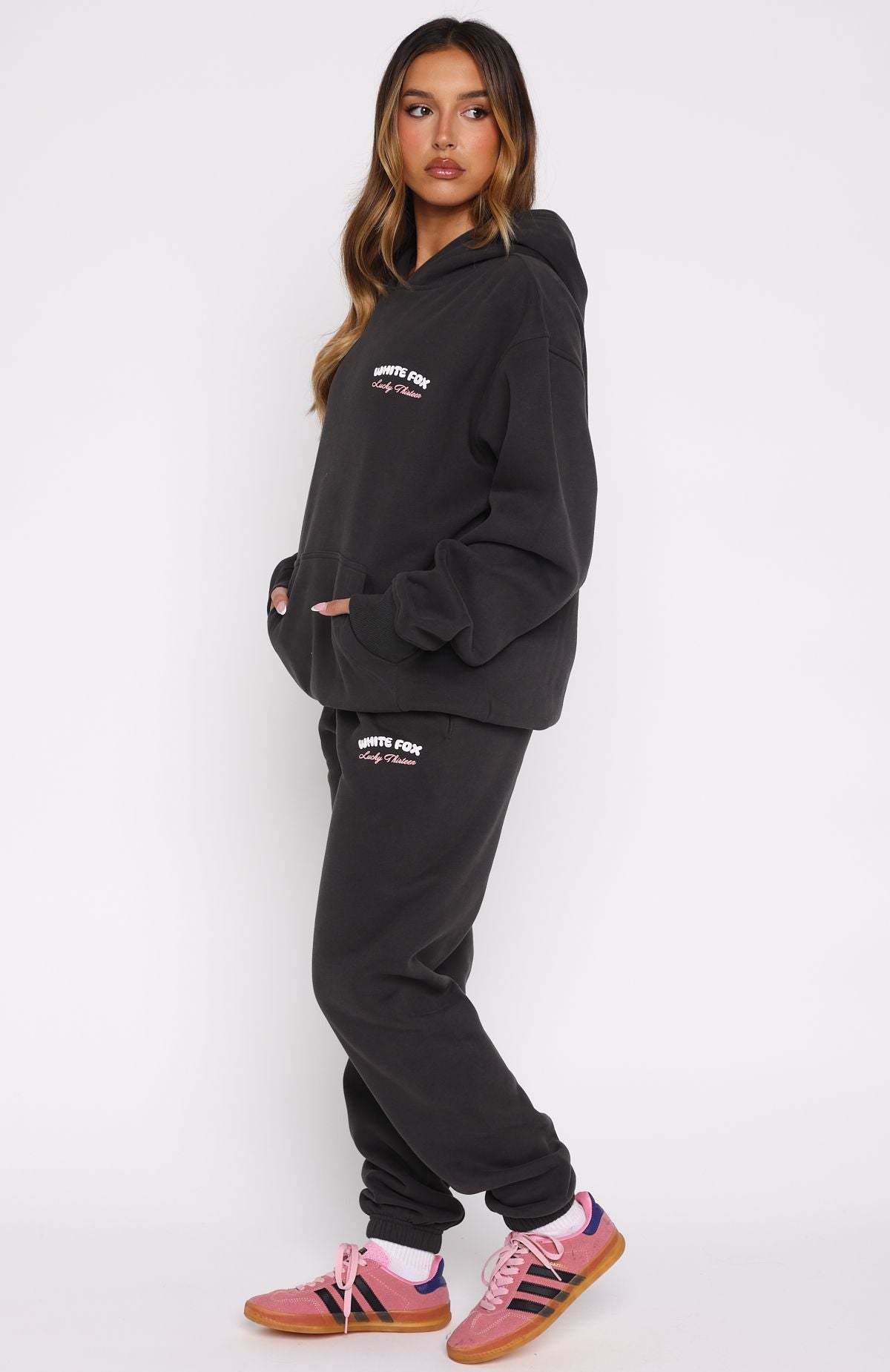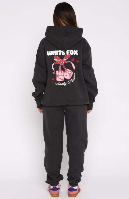 Nothing beats that new lounge feeling! The Lucky Thirteen Cheyenne Sweatpants Charcoal are designed with a thick elasticated waistband featuring an external drawstring tie, side pockets, elasticated cuffed ankles, and a relaxed silhouette. The White Fox puff print text at the side adds a signature touch, while the soft fleece interior ensures a cozy feel. Complete the look with the matching Lucky Thirteen Cheyenne Oversized Hoodie.