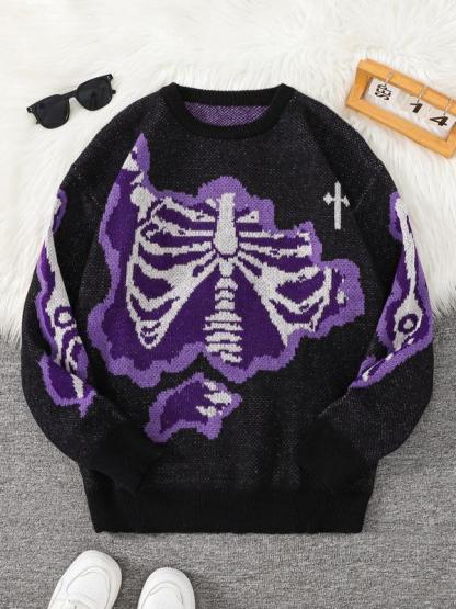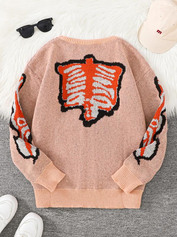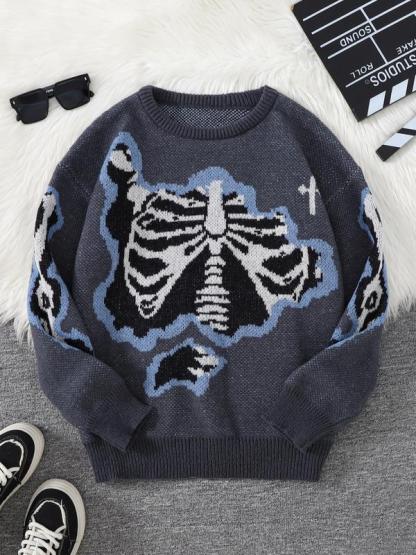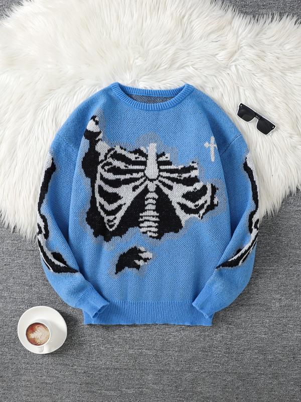 Men's Skull Print Knit Sweater, Casual Autumn/winter Fashion, Street Style Design, Perfect for Daily Wear & Gifts