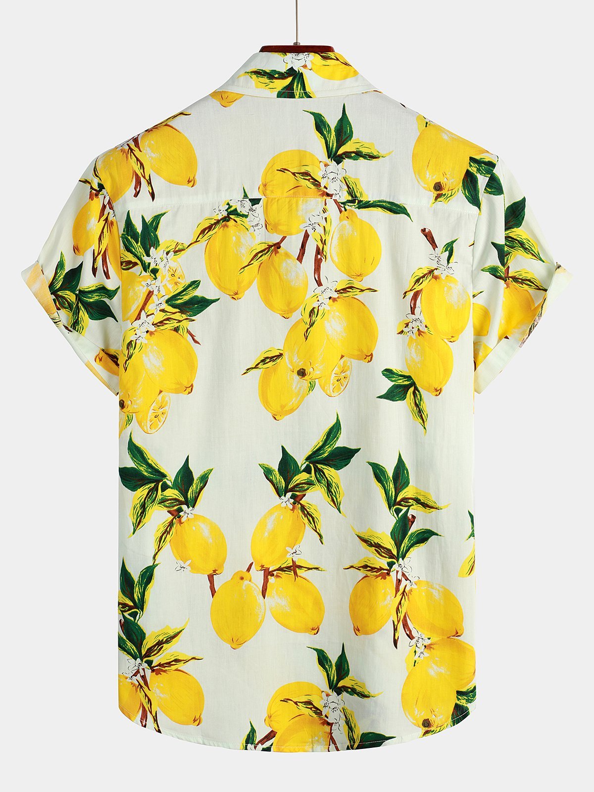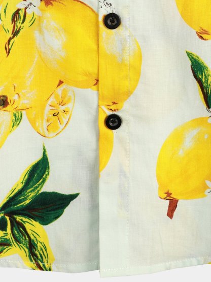 Men's Tropical Yellow Lemon Print Short Sleeve Hawaiian Shirt