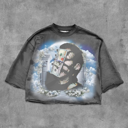 Money Printed Three-quarter Sleeve T-shirt