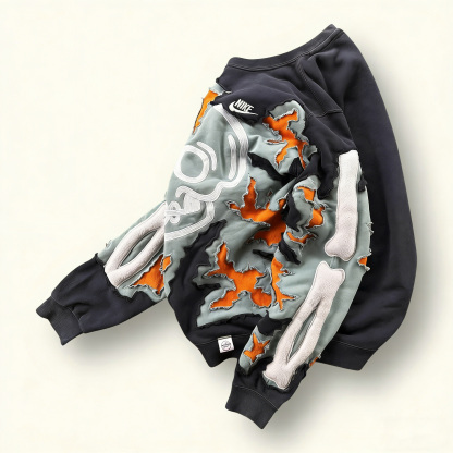 NK Cracked Skull Patchwork Sweatshirt