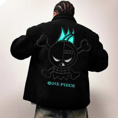 One Piece Embroidery Anime fleece Zipper Jacket