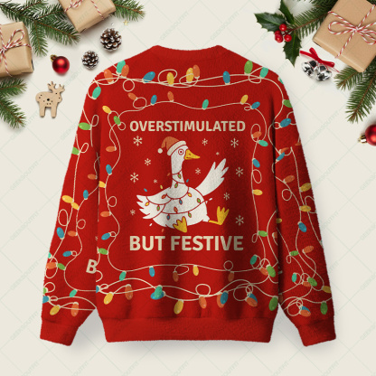 Overstimulated But Festive Christmas Fuzzy Fleece Sweatshirt