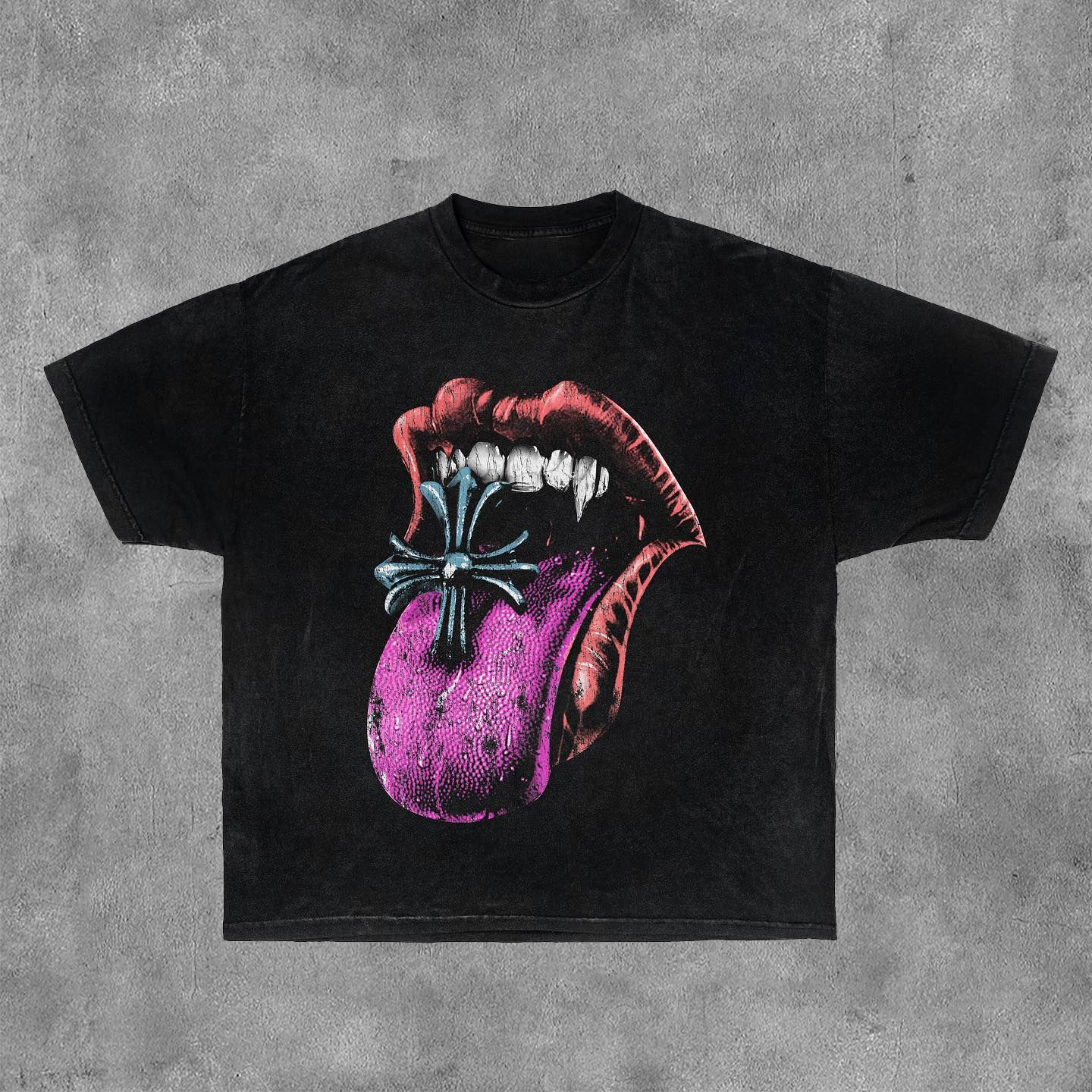 Personalized Mouth Cross Print Short Sleeve T-Shirt