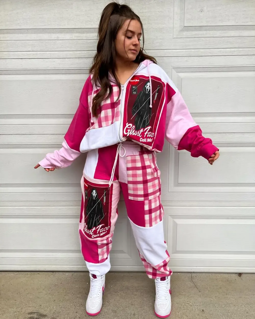 Pink 2 piece set tops and bottoms how perfect and cozy piece for your Halloween day