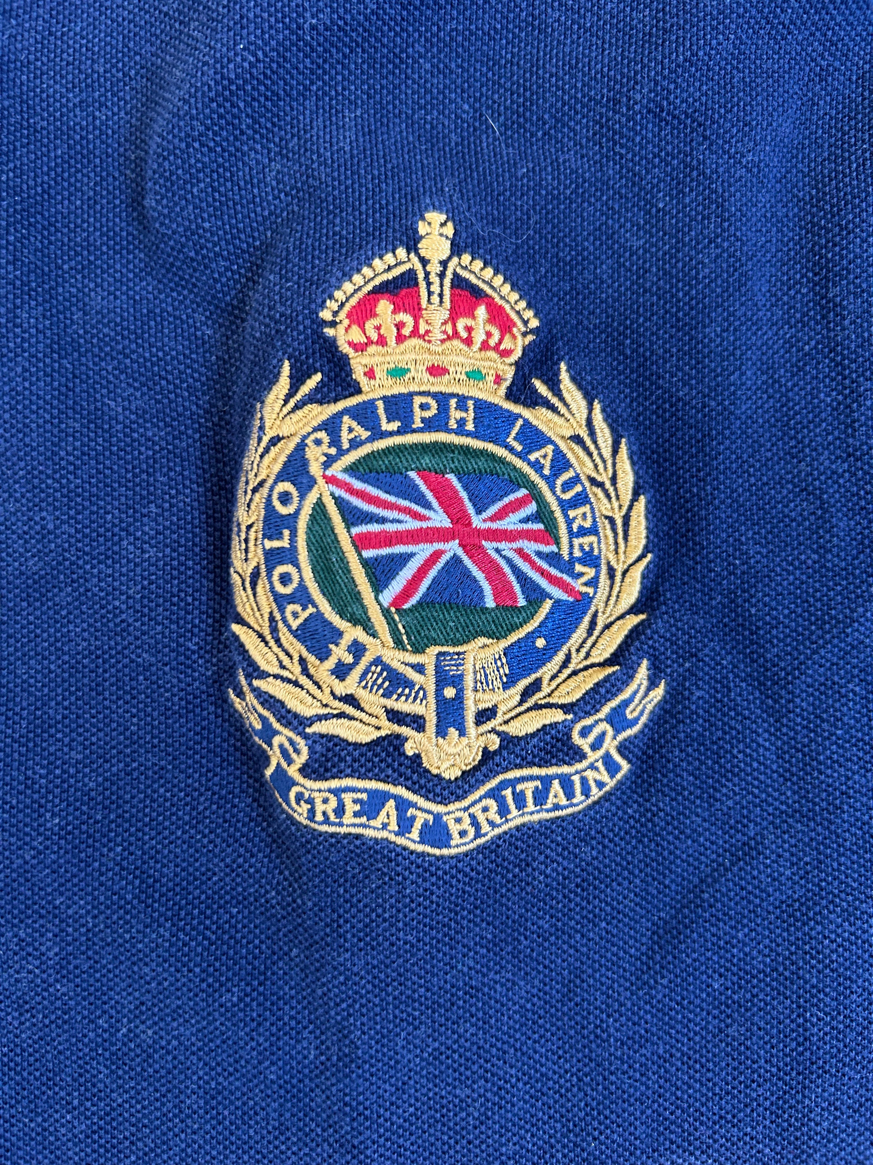 Made from 100% high-quality cotton, it features the Big Pony logo, bold "LONDON" lettering, an embroidered Great Britain crest, and the number 2 on both sleeves—a signature detail in Ralph Lauren’s polo designs. No longer in production, making it a rare and collectible item for Ralph Lauren enthusiasts.