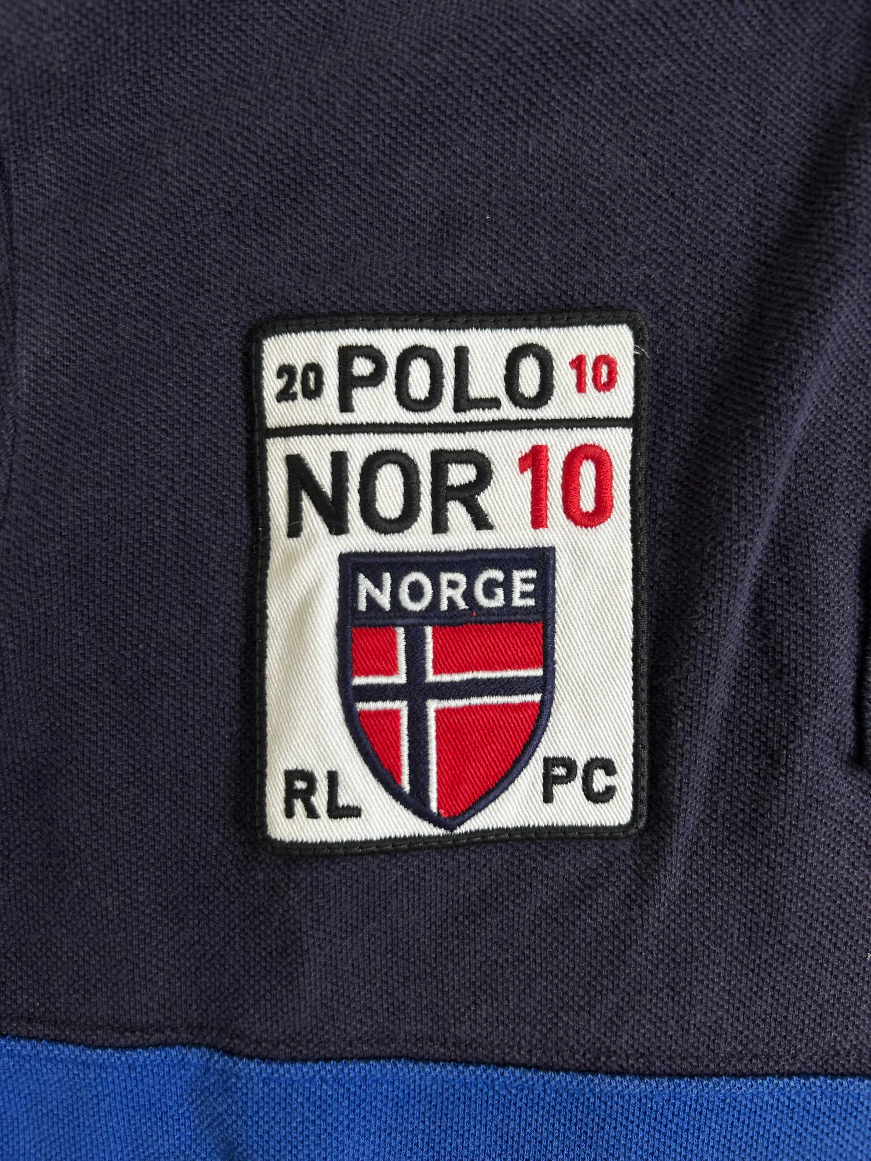 Made from 100% high-quality cotton, it features the Big Pony logo, bold "NORWAY" lettering, an embroidered Norway team crest, and the number 10on both sleeves—a signature detail in Ralph Lauren’s polo designs. No longer in production, making it a rare and collectible item for Ralph Lauren enthusiasts.