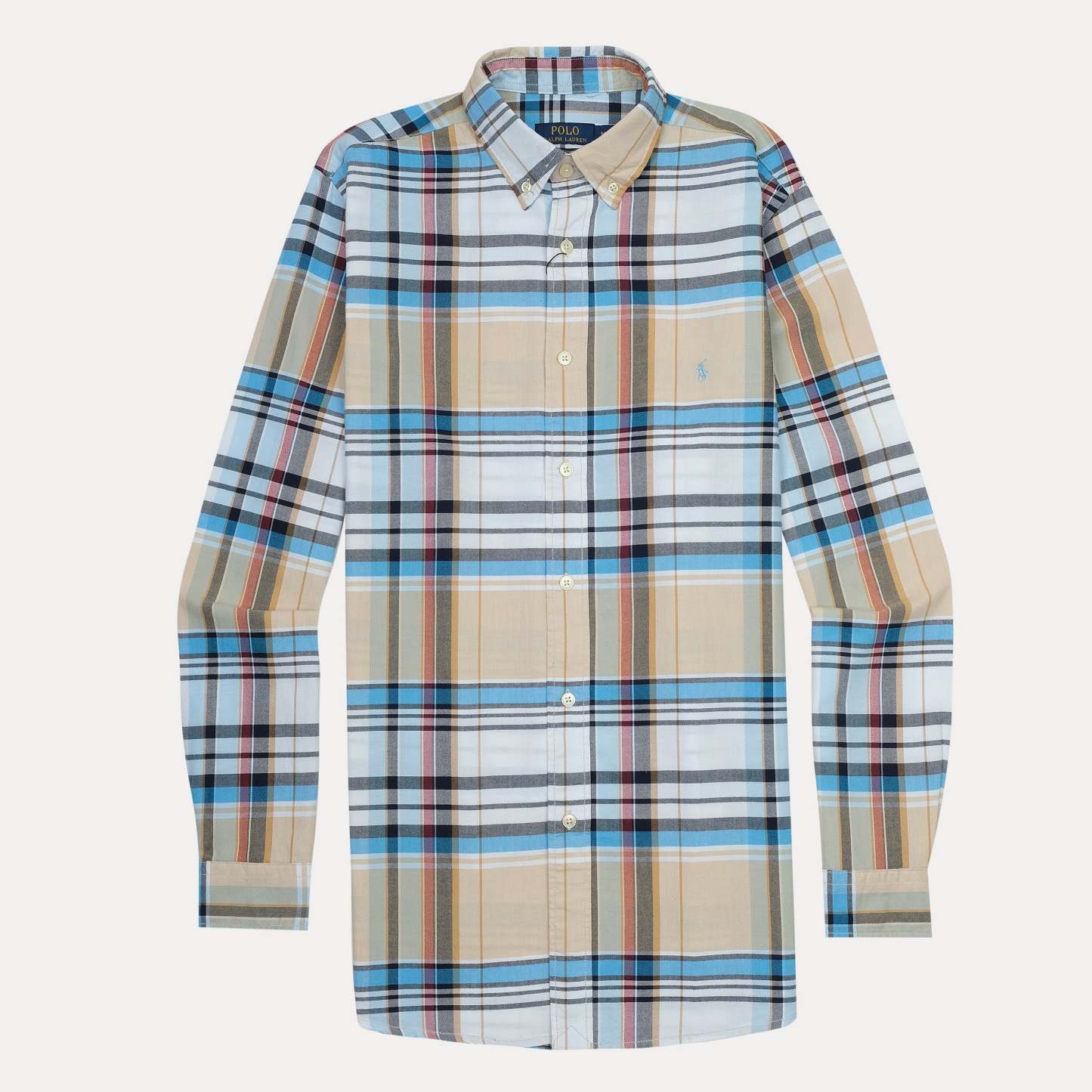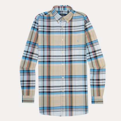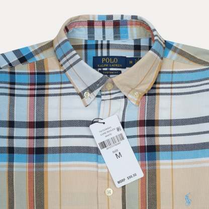 Polo Ralph Lauren Custom Fit Plaid Shirt in Soft Sand and Sky Blue