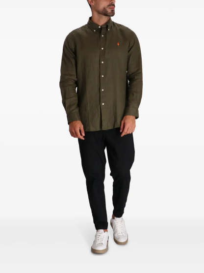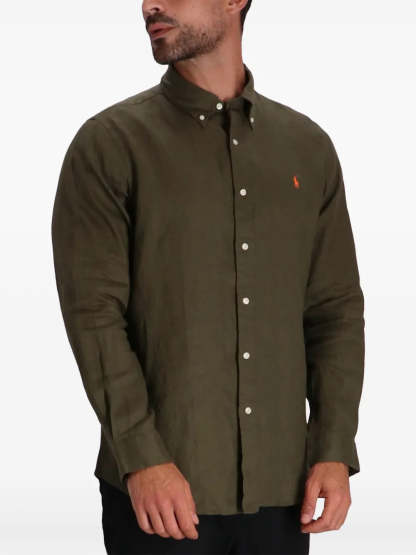 Polo Ralph Lauren Luxurious Olive Linen Button-Up Shirt