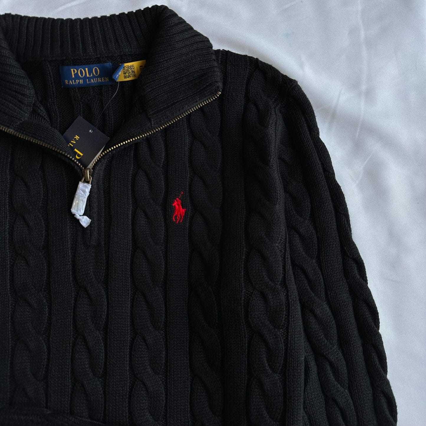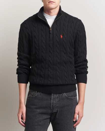 POLO Enigmatic Charcoal Slim Fit Cable Knit Quarter-Zip Sweater