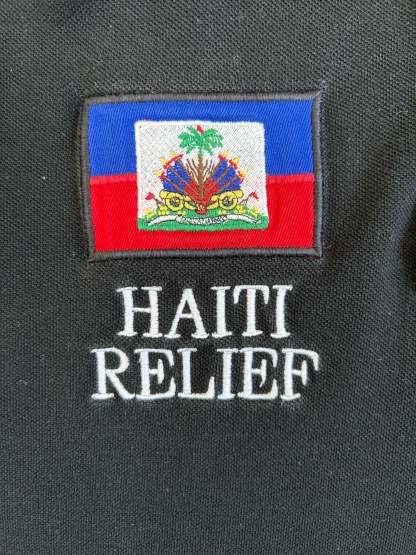 Made from 100% high-quality cotton, it features an embroidered Haitian flag with "HAITI RELIEF" lettering and the Big Pony logo in white. This polo holds historical significance and is a rare collectible item for both Ralph Lauren enthusiasts and collectors of philanthropic fashion pieces.