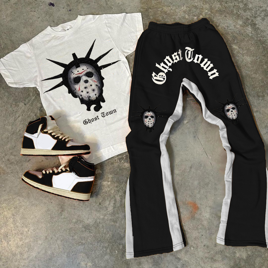 Punk Print T-Shirt Trousers Two-Piece Set
