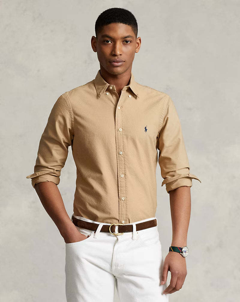 Ralph Lauren Classic Cotton Button-Up in Sandy Beige