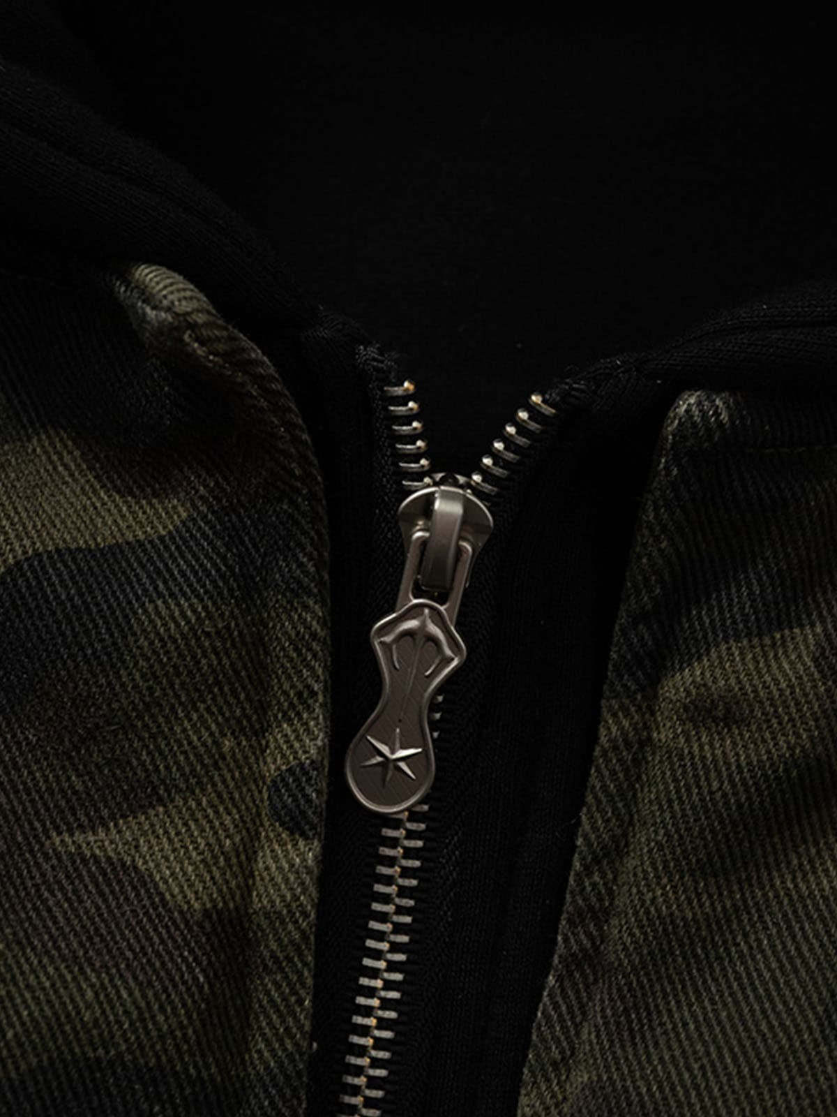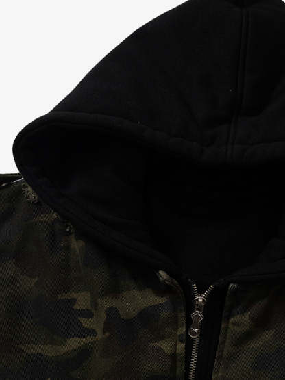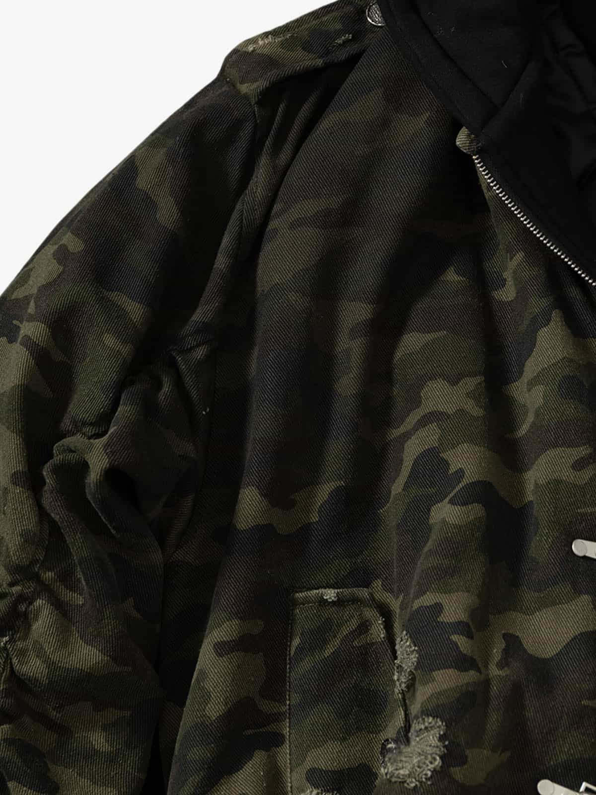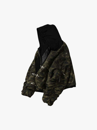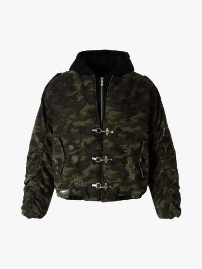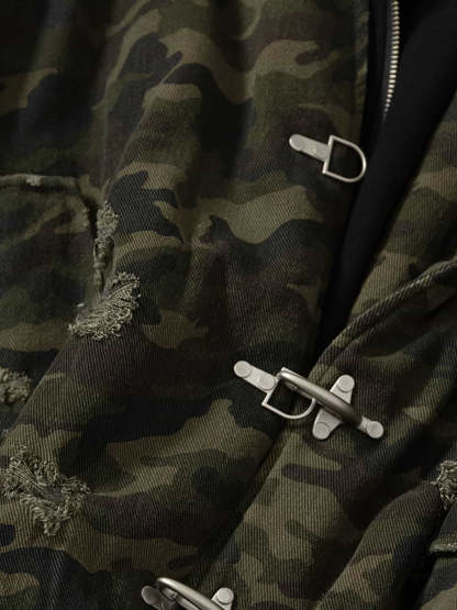 Retro Camouflage Faux Layered Metal Buckle Padded Jacket