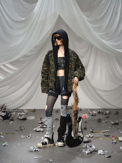 • Design Elements: Distressed patches, toggle closures, hooded design