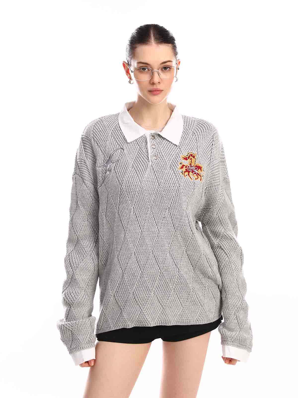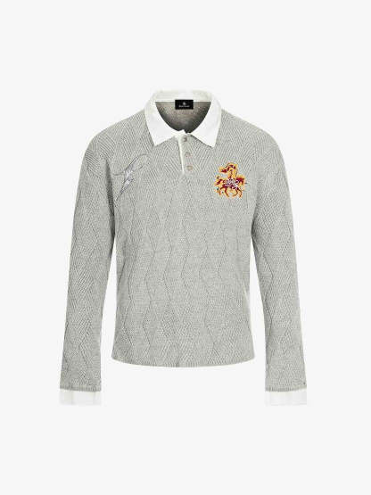 • Design Elements: Embroidered horse emblem on the chest, subtle geometric pattern throughout, classic polo collar