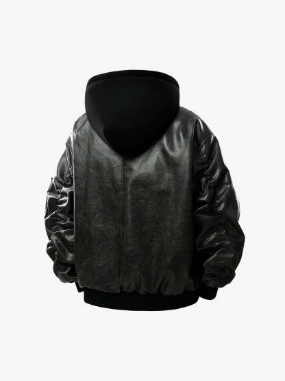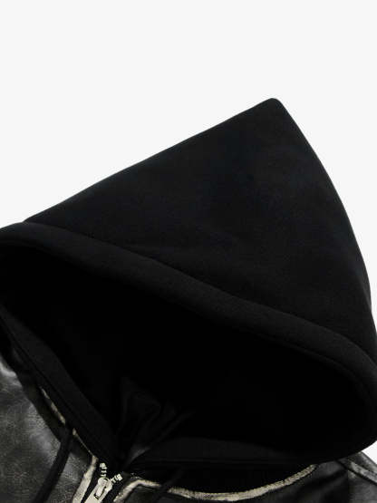 Retro Distressed Washed PU Leather Cotton Jacket