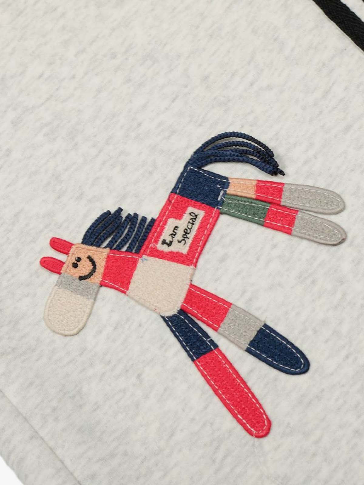 • Design Elements: Embroidered character patch, black and white striped side panels, drawstring waistband