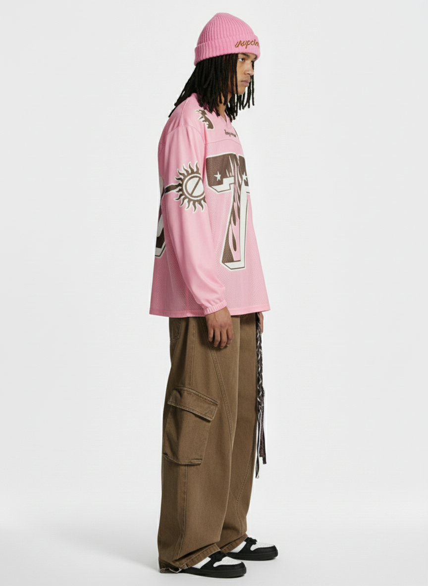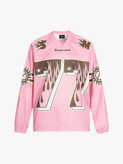 Retro Graphic Flame Number Print Long-Sleeve Jersey T-Shirt