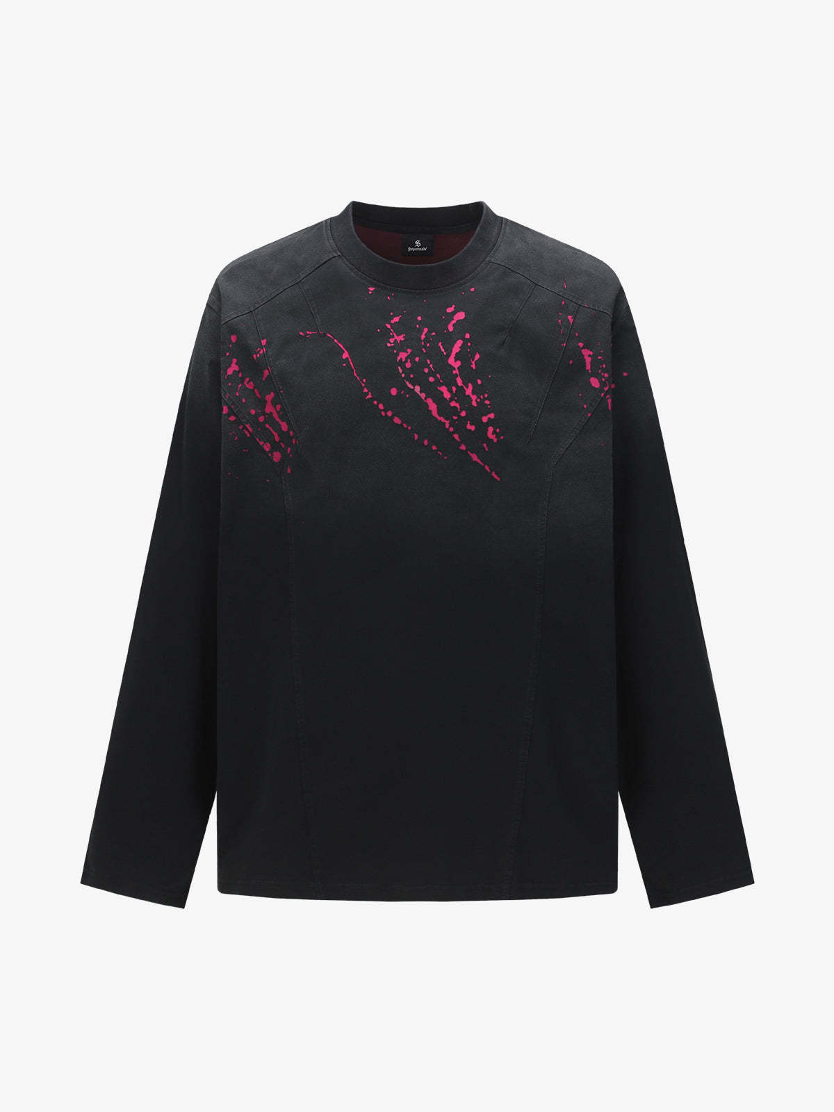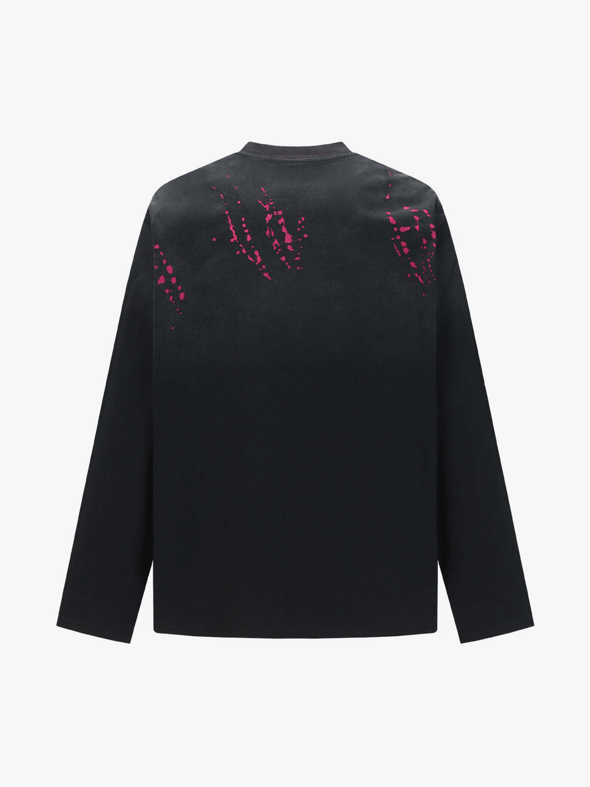 Retro Ink Splatter Design Long-Sleeved T-Shirt