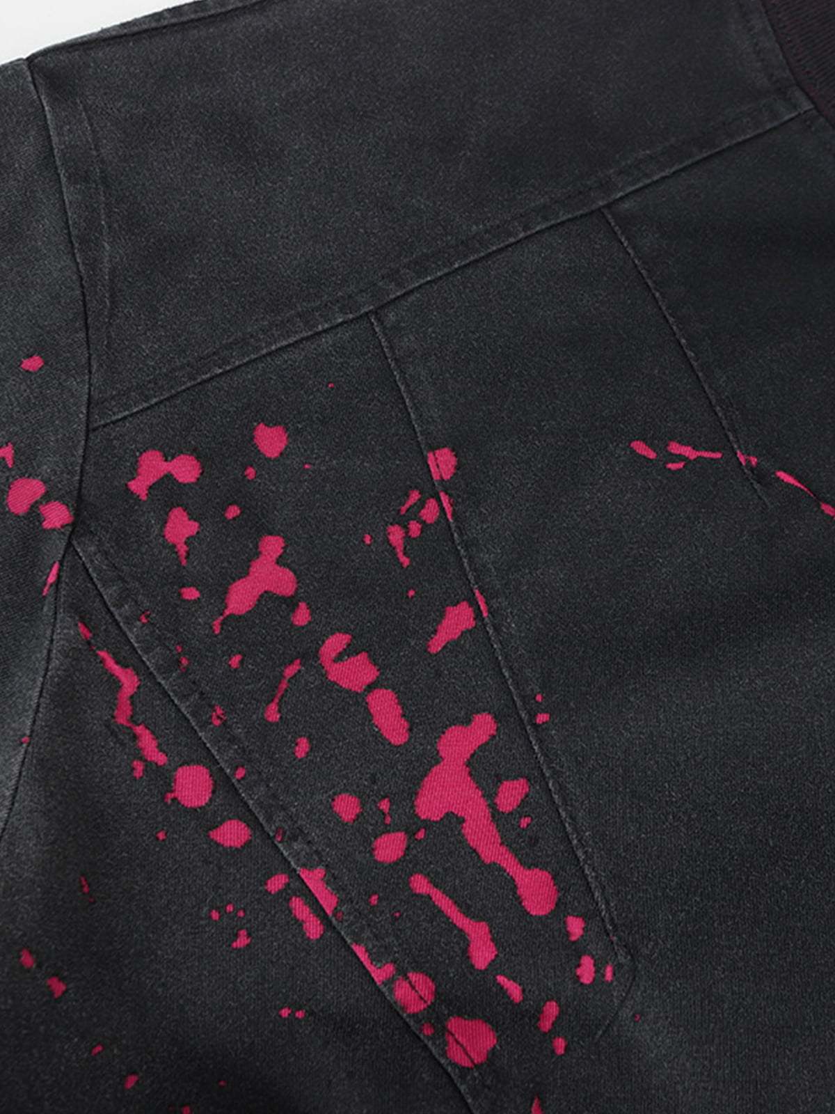 • Design Elements: Unique pink splatter pattern on shoulders and chest, minimalist black base color