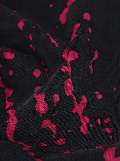 • The bold pink splatter design adds a striking contrast to the sleek black top