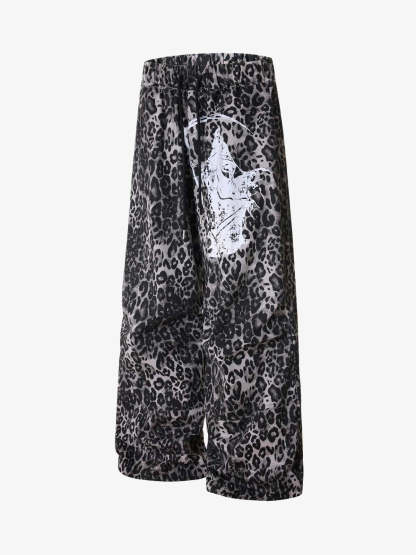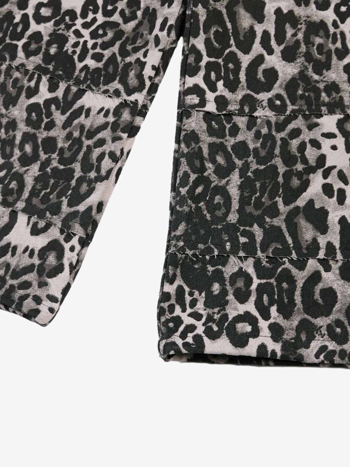 • Design Elements: Bold leopard print pattern, eye-catching graphic design on the leg, relaxed fit style