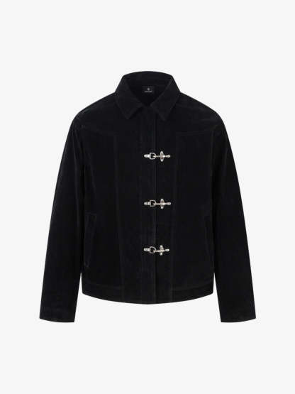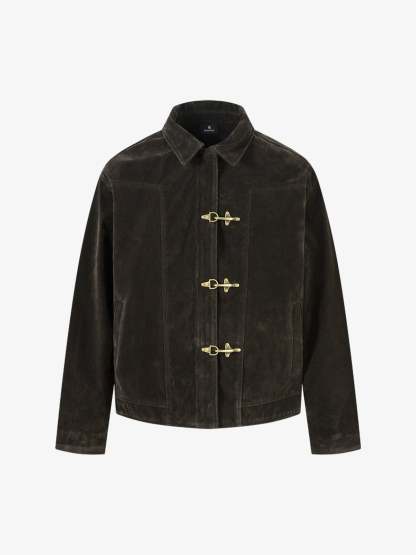Retro Unique Metal Button Suede Lapel Bomber Jacket - 2538