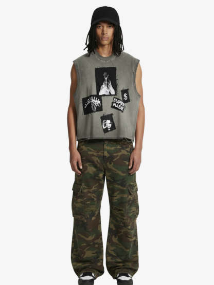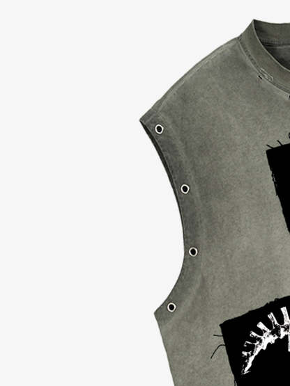 Ripped Graphic Patch Sleeveless Vest