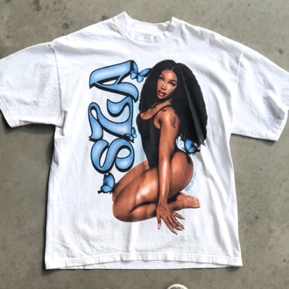 Sexy Character Print Short Sleeve T-Shirt