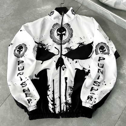 Skull Printed Long Sleeve Zipper Design Sports Outdoor Trendy Jacket