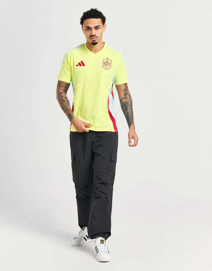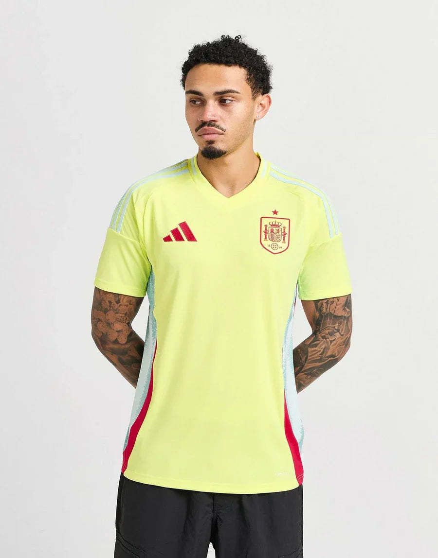 Meet Spain's stunning new away shirt, launched especially for EURO 2024. This modern design combines style and performance, using the highest quality materials to provide an exceptional wearing experience. Every detail has been carefully considered, from the breathable textiles to the ergonomic fit, to provide players and fans with comfort and confidence on and off the field. So prepare to show your pride and show your support for Spain with this stunning away shirt that embodies your passion for soccer.